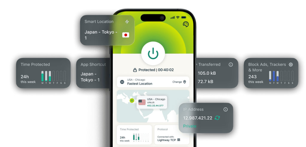 ExpressVPN凭借军用级AES-256加密、高速自研Lightway协议(含Turbo多隧道技术)、Sh…